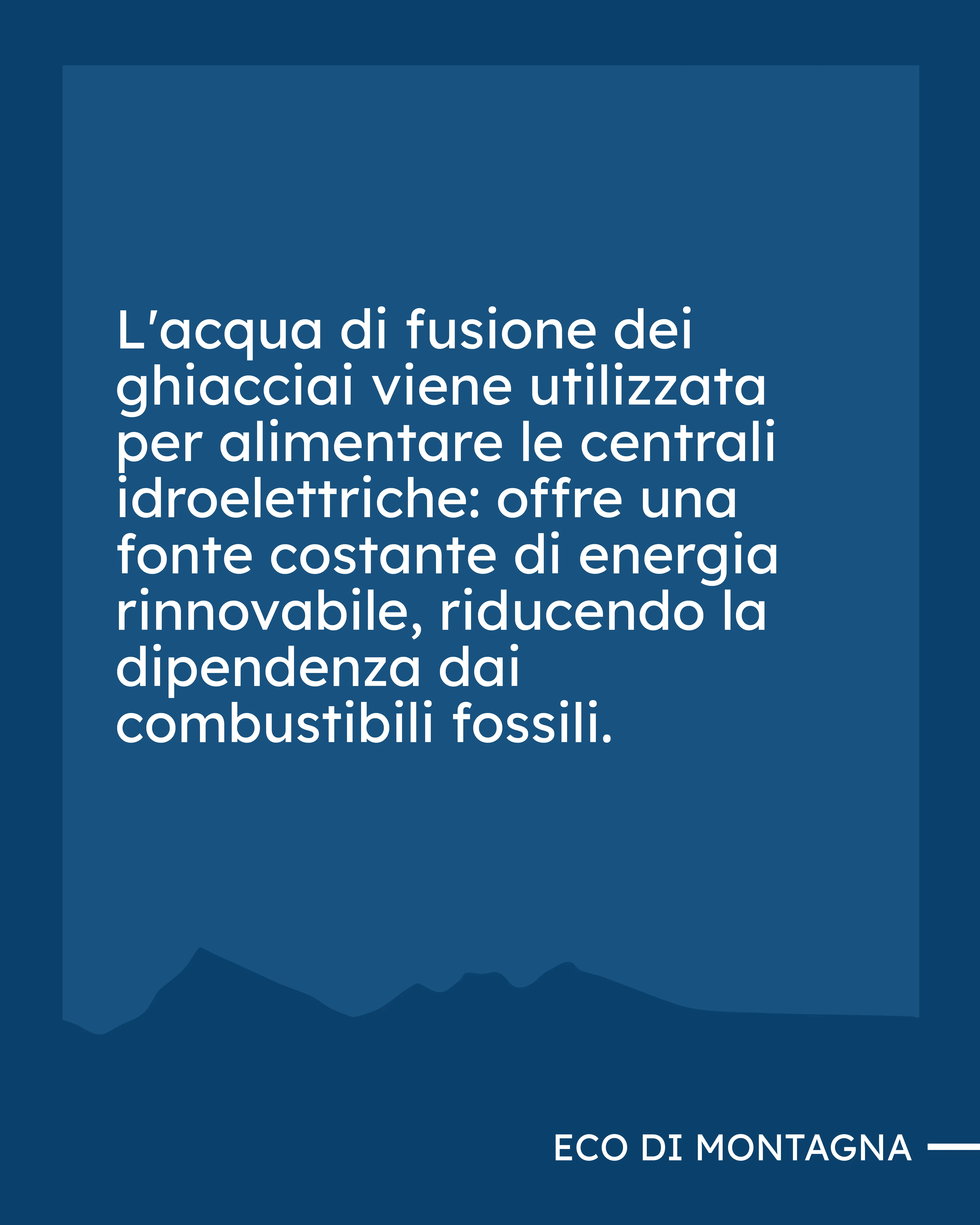 L’acqua di fusione proveniente dai ghiacciai durante l’estate viene spesso utilizzata per alimentare le centrali idroelettriche.